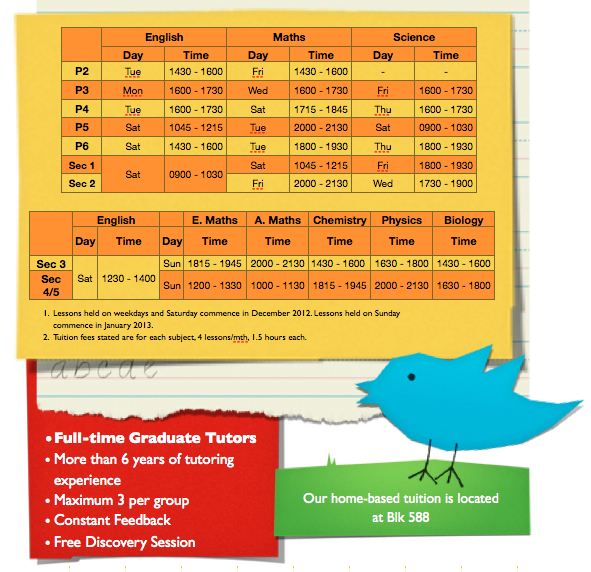 As a result of our expansion to Woodlands and also working to accommodate our current students in Sembawang, we have neglected updating this site. There are still some limited slots for both Tutors in AY2016. We respond to requests on the “Request” widget and emails sent CramTutors@gmail.com or to calls .
